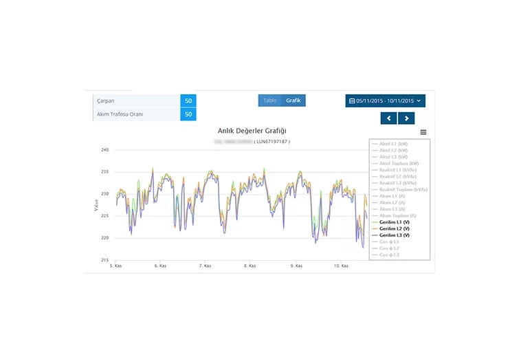 Reaktif oranları grafik üzerinde analiz edip problemlerin tespiti, faz kesintisi, gerilim düşmesi/yükselmesi, sayaç akım trafolarının bozulması gibi problemlerin tespiti veya rölenizi gerçek zamanlı olarak uzaktan kontrol edilmesi gibi daha birçok işlemler yapabilirsiniz.